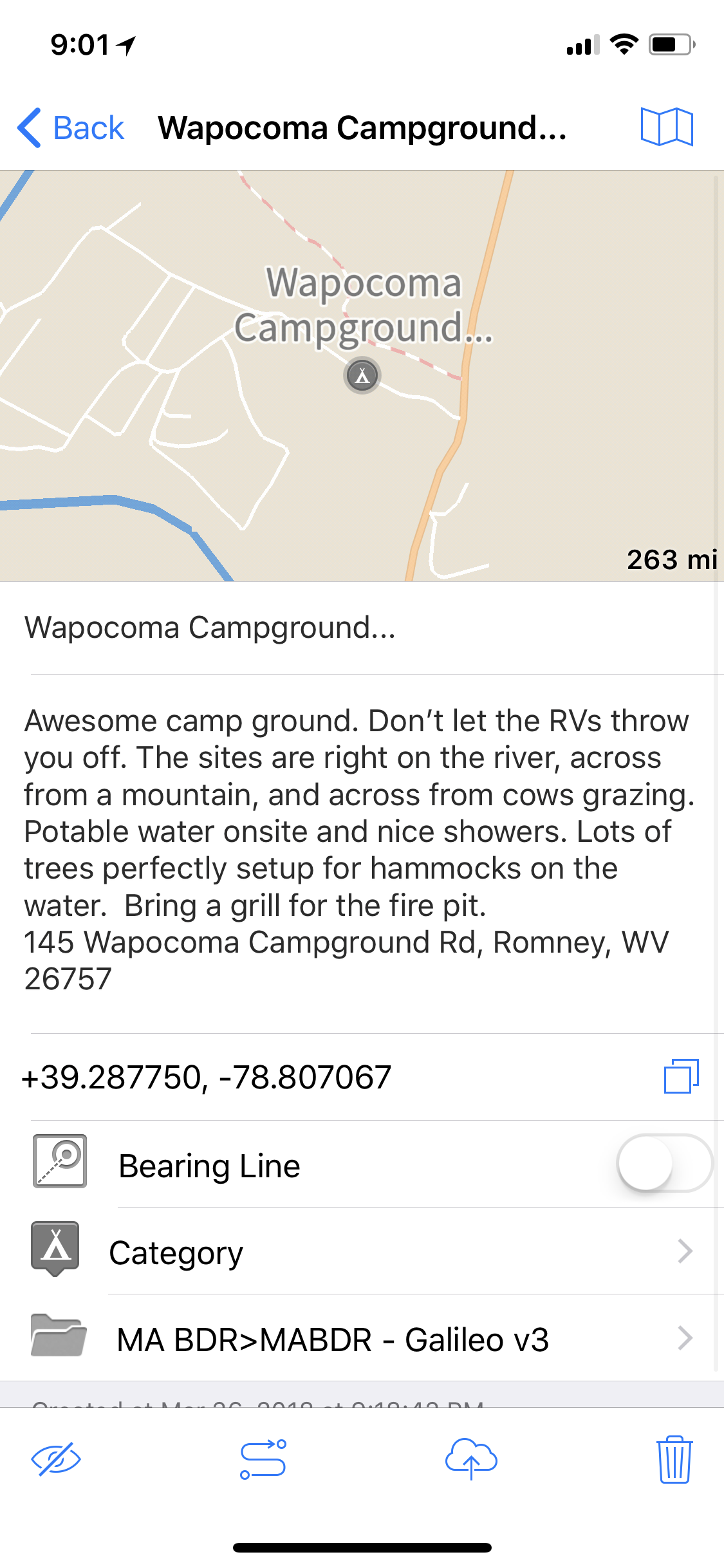 Create new bookmarks (waypoints) as you ride, with notes